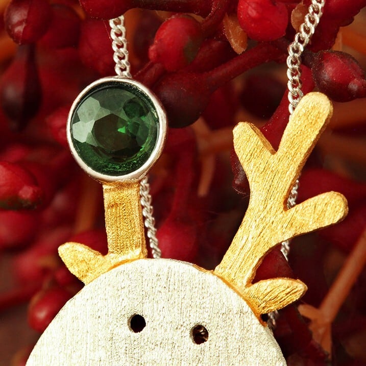 トルマリンの輝きと、マットな質感のトナカイが美しく調和するデザイン。