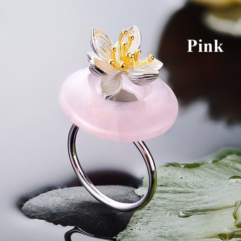 Lotus & Natural Gemstone Ring / ロータス & 天然石 リング