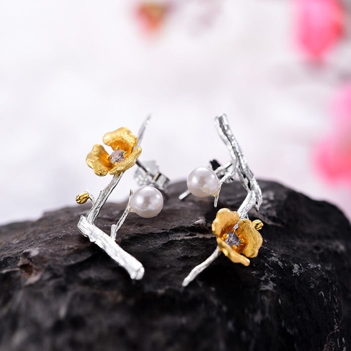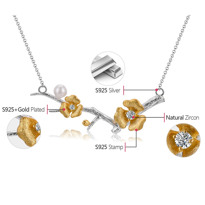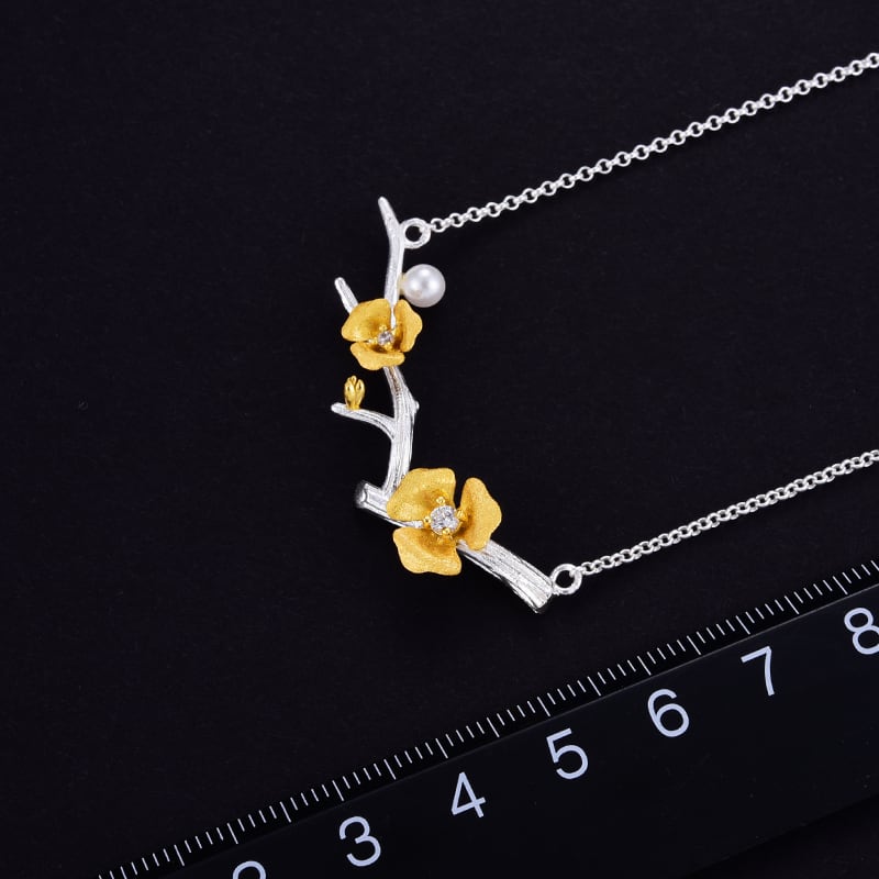 【Jewelry Set】 Plum Flower Necklace & Earrings / プラム 梅 フラワー ネックレス & イヤリング ピアス