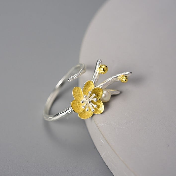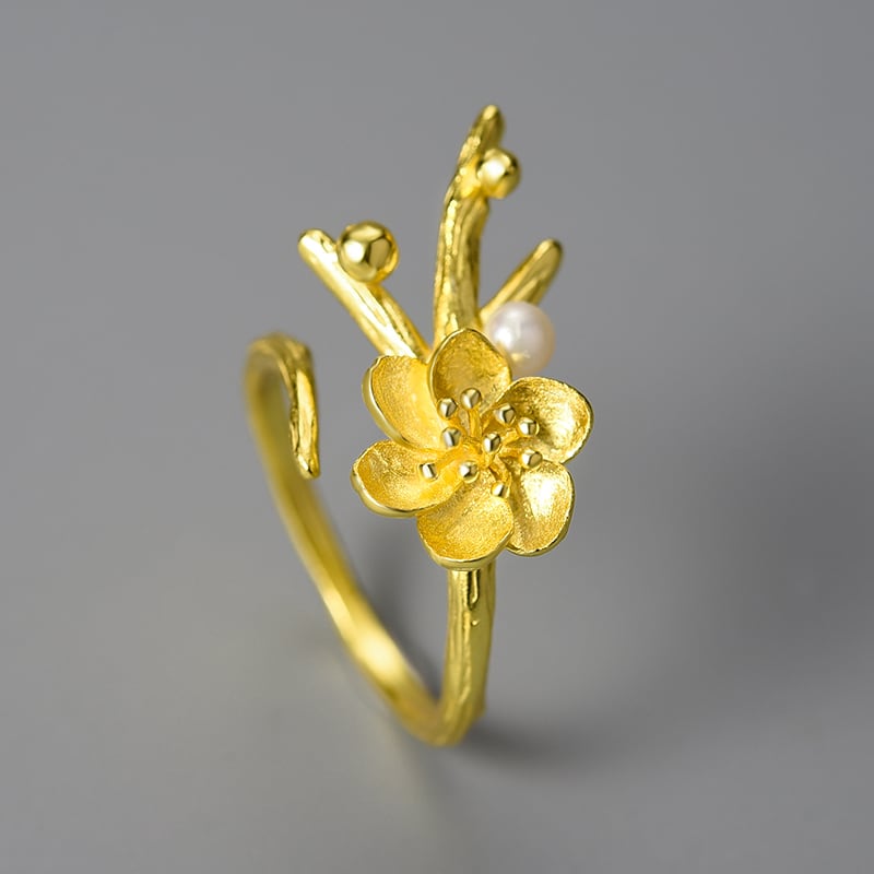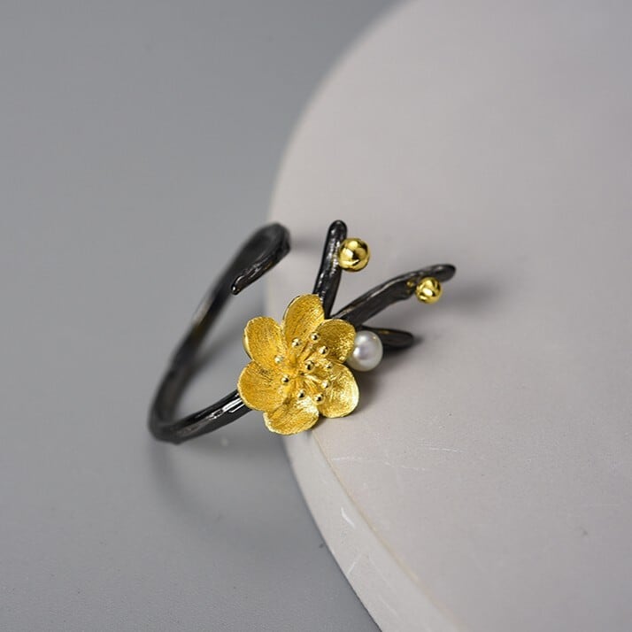 枝先に咲く花と、そっと添えられたパール。