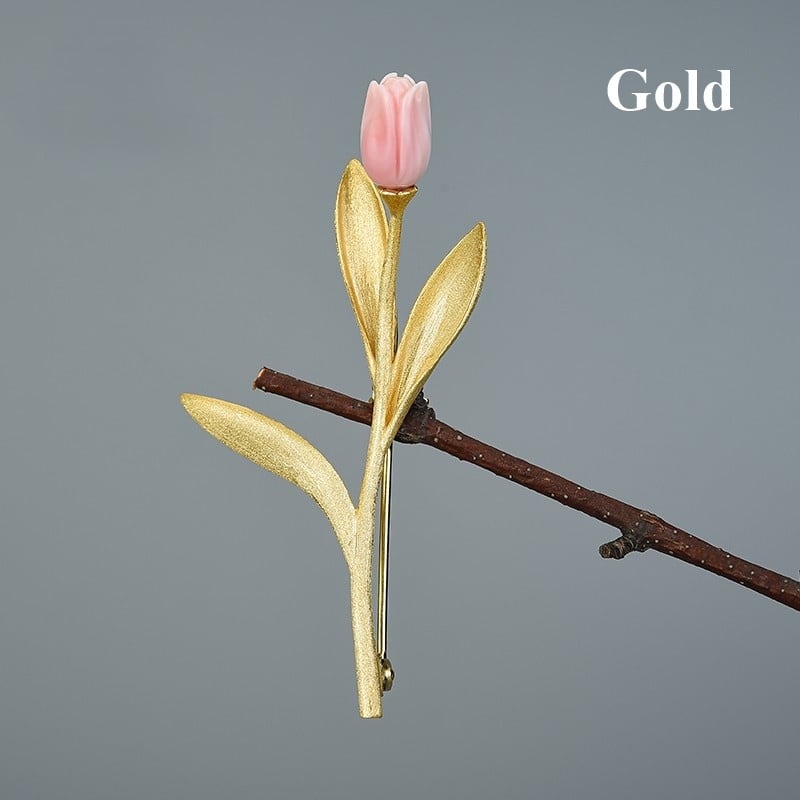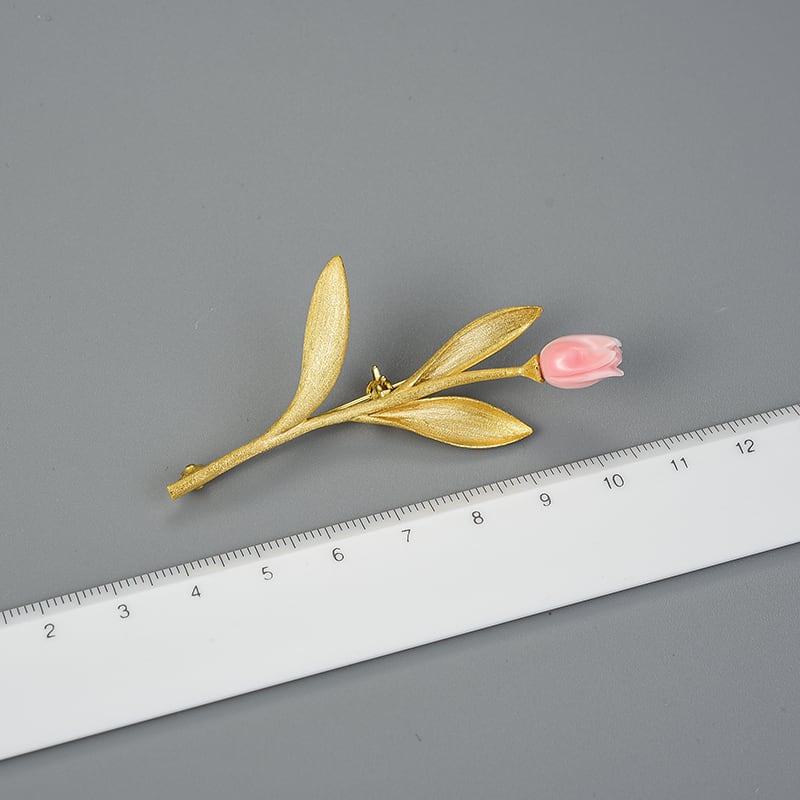 クイーンコンクシェルを使用したチューリップモチーフのブローチ。