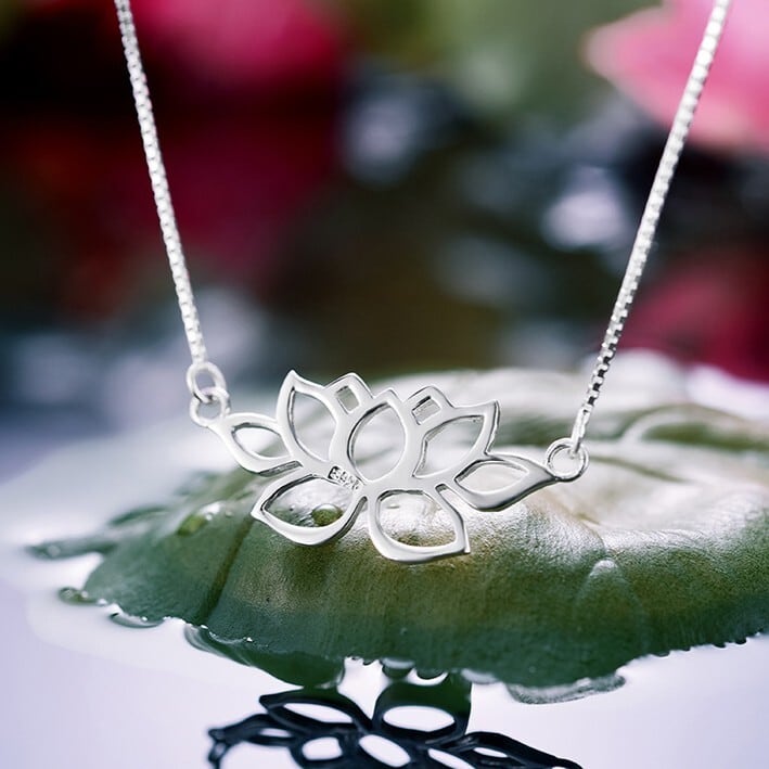 透かしデザインの蓮の花をモチーフにしたネックレス。