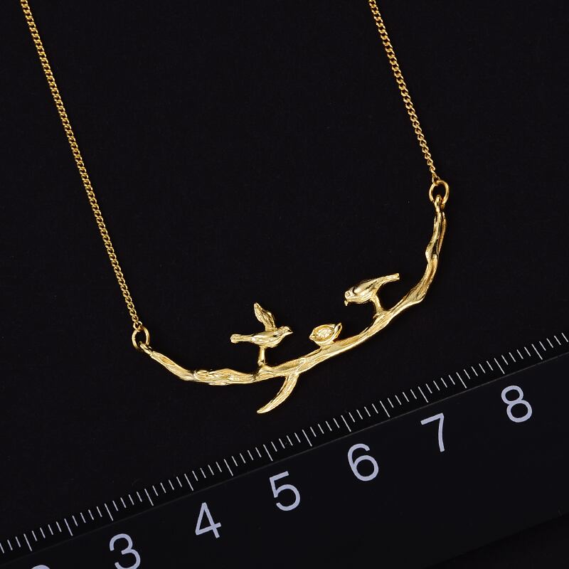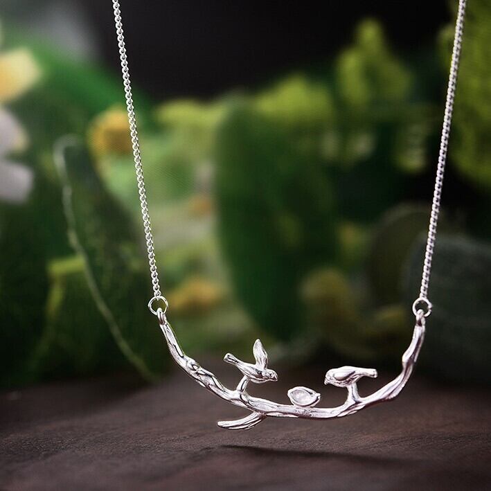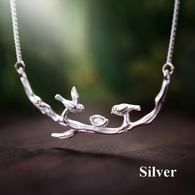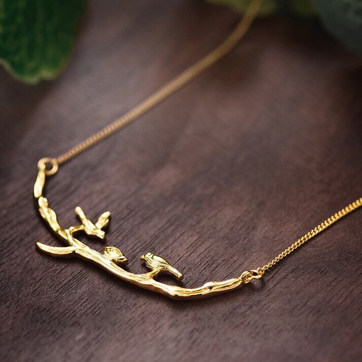 枝に並んだ小さな鳥をモチーフにしたネックレス。