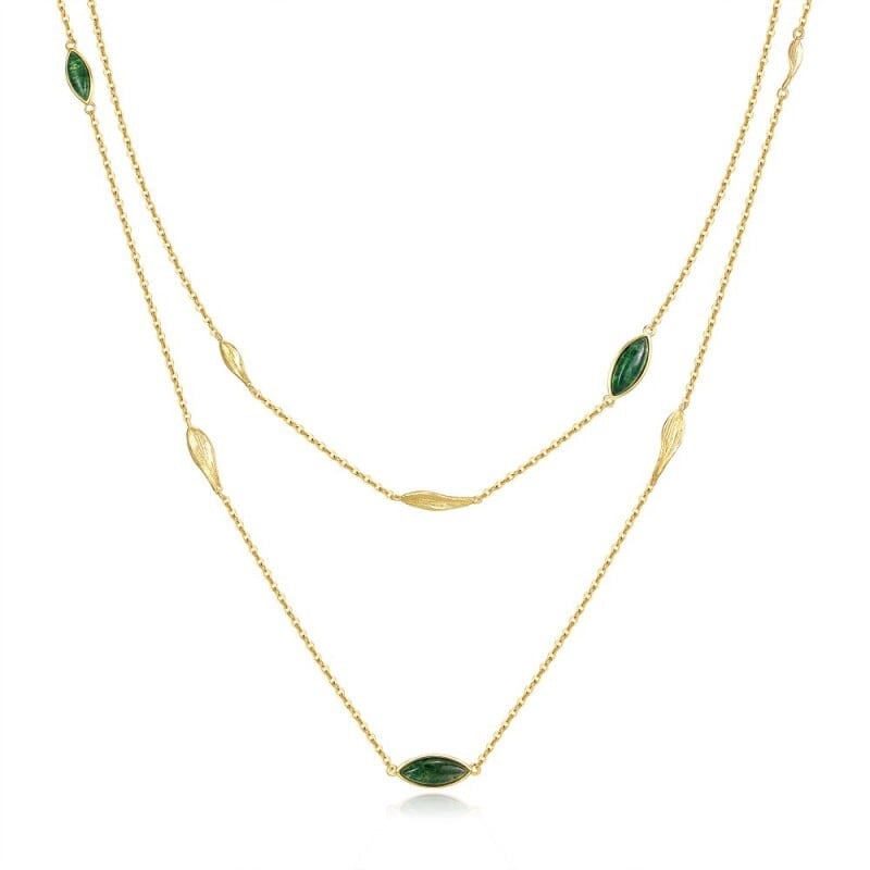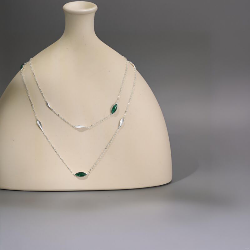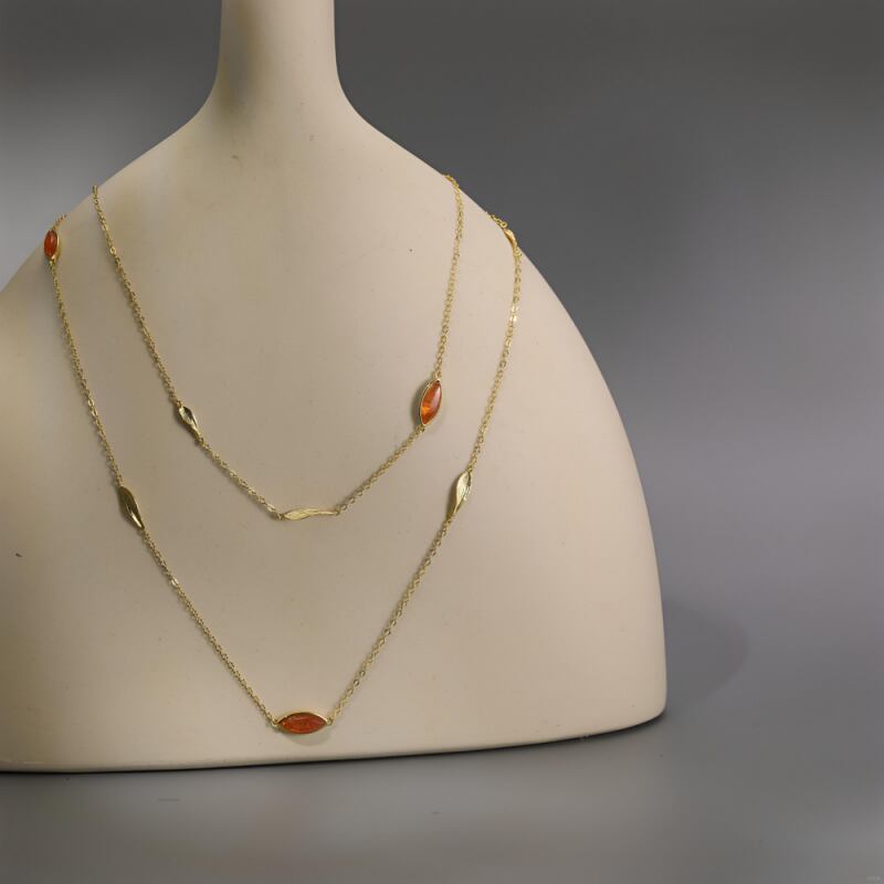 繊細なチェーンに小さなストーンをあしらった、マルチレイヤーデザインのネックレス。