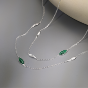 オーバルストーンのさりげない彩りが、シンプルなスタイルに上品なアクセントを添えます。