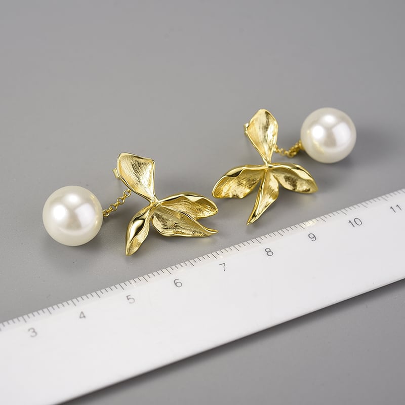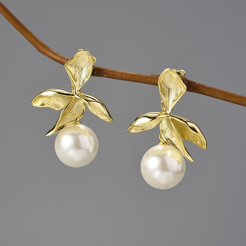繊細なリーフと花のモチーフが、耳元で静かに揺れる。