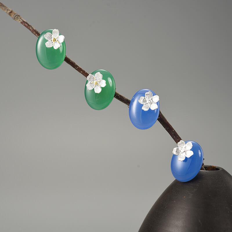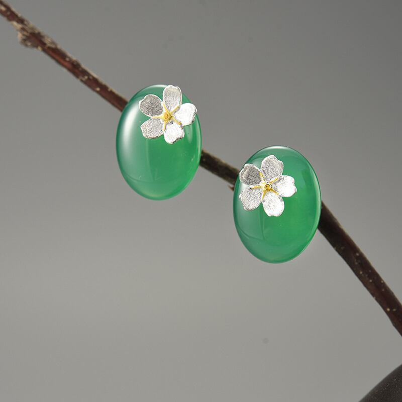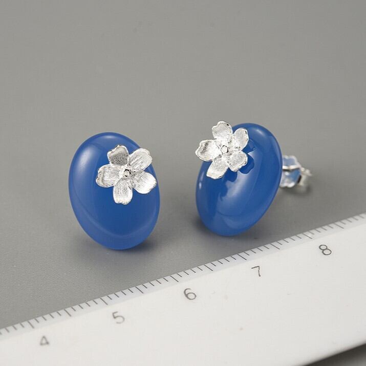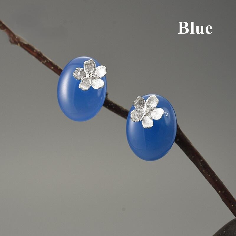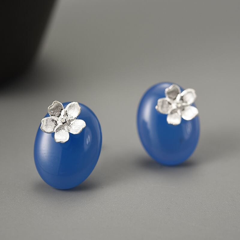 Agate Stone Forget-me-not Flowers Earrings / アゲート ワスレナグサ フラワー イヤリング ピアス
