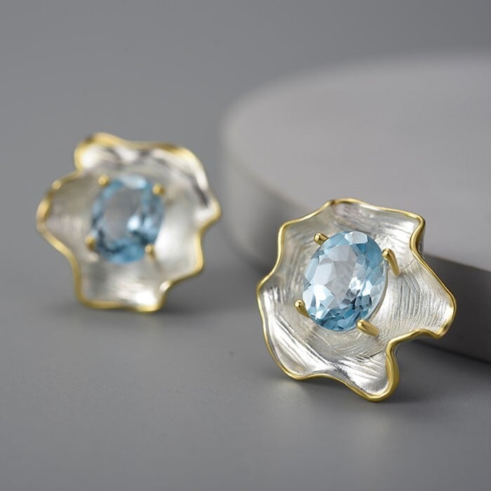 Gemstone Curled Leaf Earrings / ジェムストーン カール リーフ イヤリング ピアス