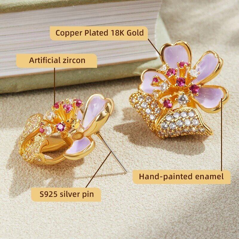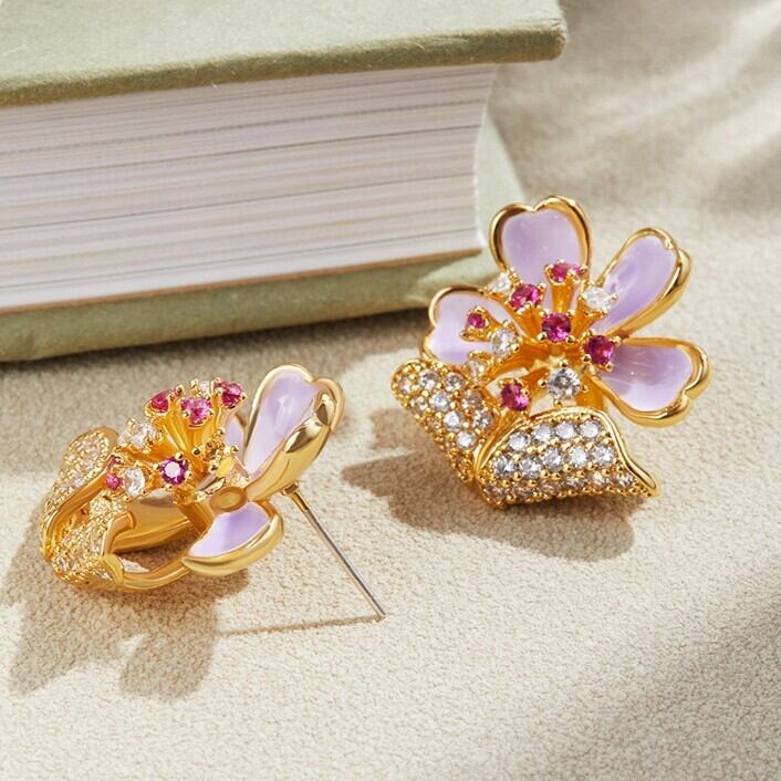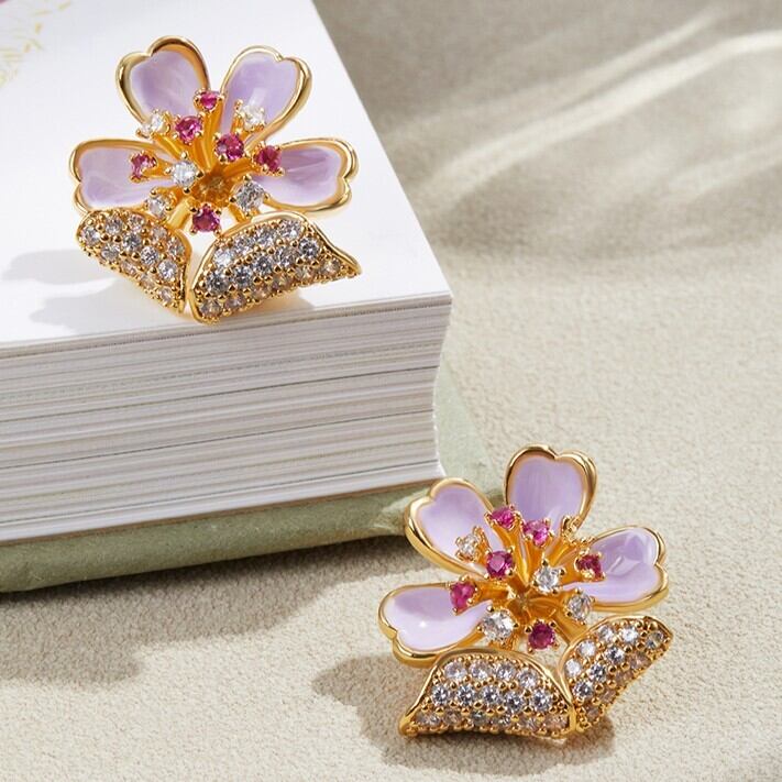 精巧な手描きのエナメル細工で、淡いピンクの桜の花が表現されています。